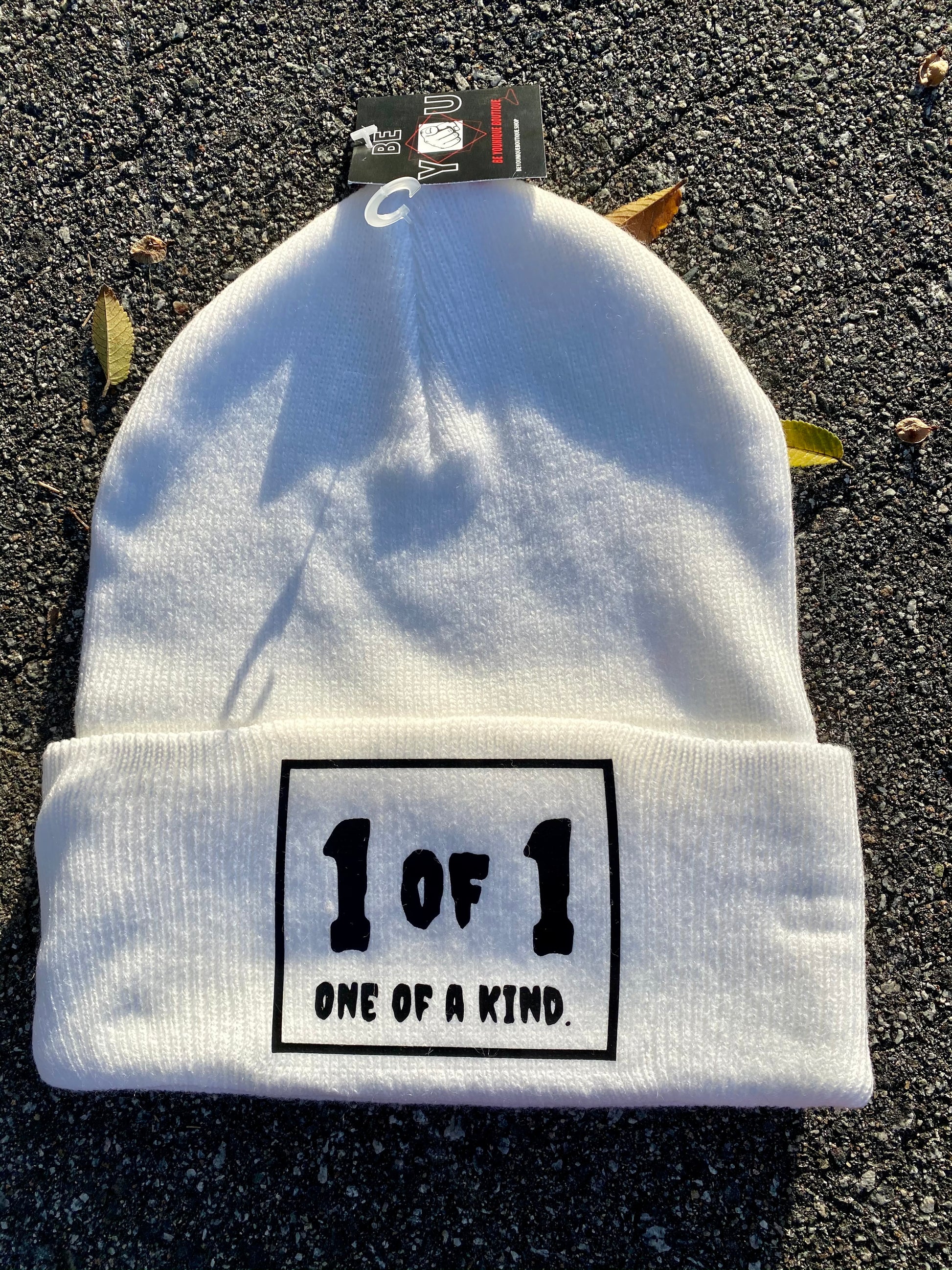 1 of 1, One of a Kind Beanies available in glacier, black, and white print